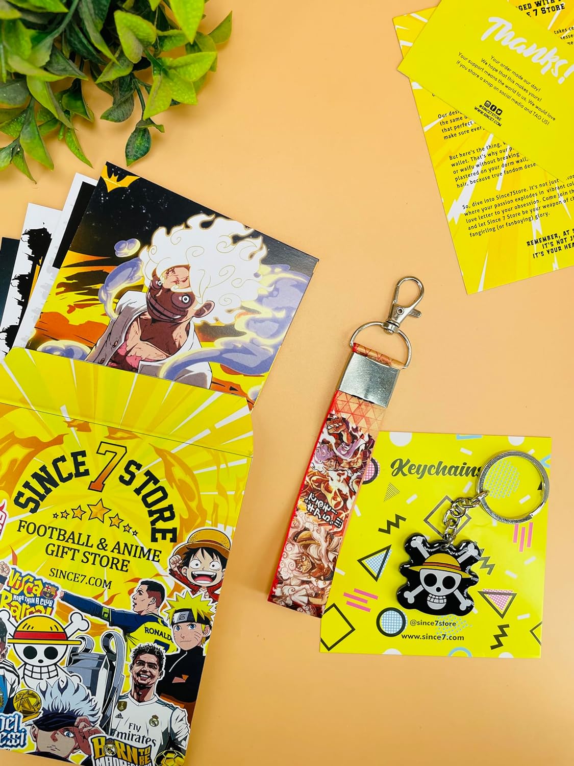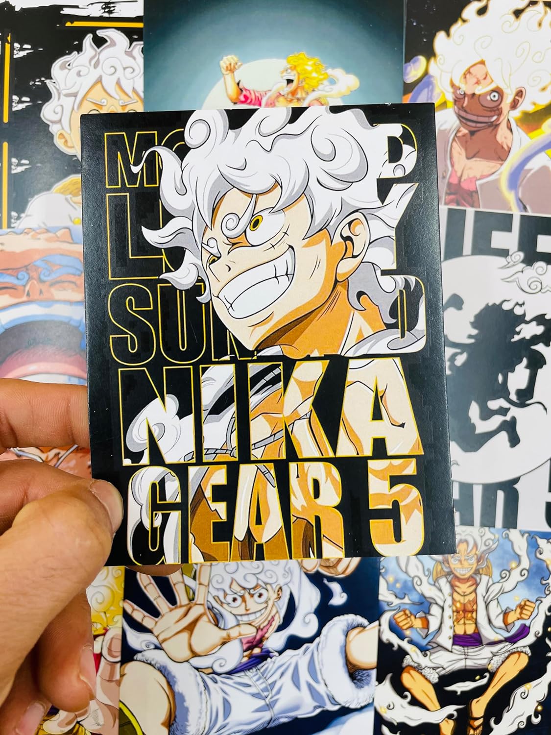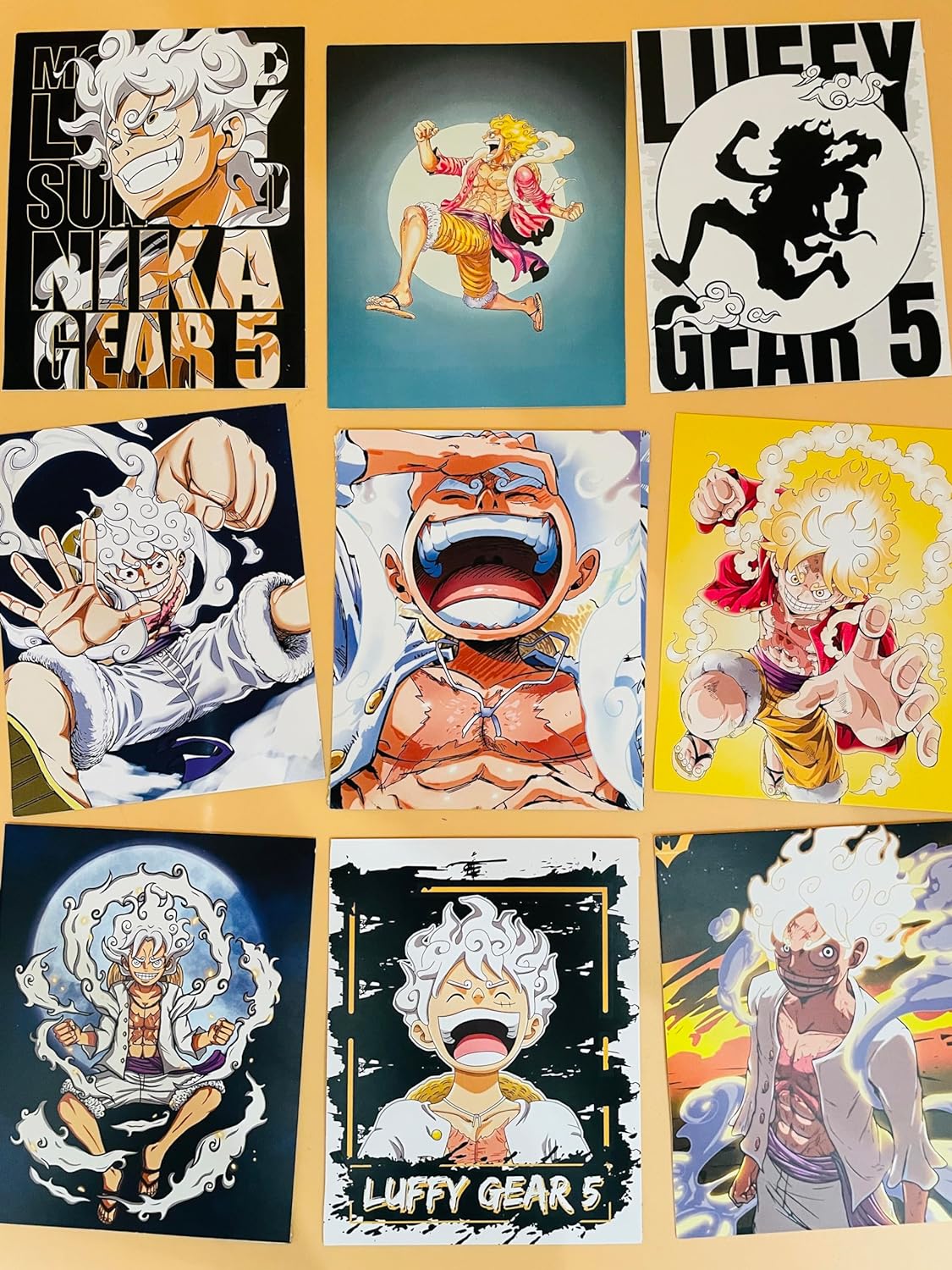 One Piece Gear 5 Luffy 3 Item Gift Combo: 9 Self adhesive mini posters, 1 Double Sided Keychain, 1 Key-Tag